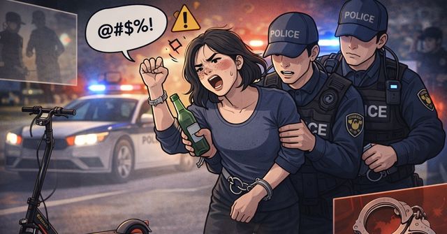음주 상태에서 전동 킥보드를 타던 20세 여성이 단속 경찰관 5명에게 욕설과 폭행을 저지른 혐의로 구속됐다. 조사 결과 이 여성은 전과 9범인 것으로 확인됐다.