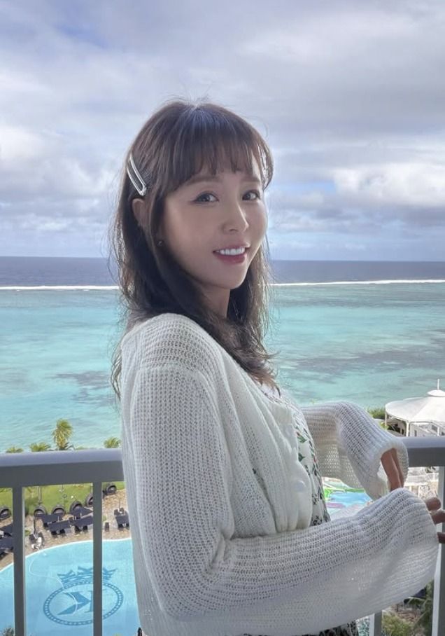 신지는 화려한 패턴의 원피스에 화이트 가디건을 매치해 청순하면서도 발랄한 휴양지 룩의 정석을 선보였다. 머리에 꽂은 핀과 라탄 가방은 그녀의 귀여운 매력을 한층 돋보이게 했다.