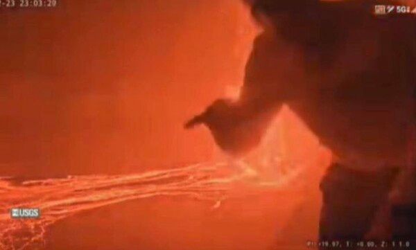 뉴시스 보도에 따르면, 미국 노스캐롤라이나 지역방송국 WRAL에 따르면 지난해 12월 말 하와이 킬라우에아 화산의 39번째 분화가 진행되던 당시 하와이 화산 관측소의 V1 감시 카메라에 남성 두 명이 포착됐다.