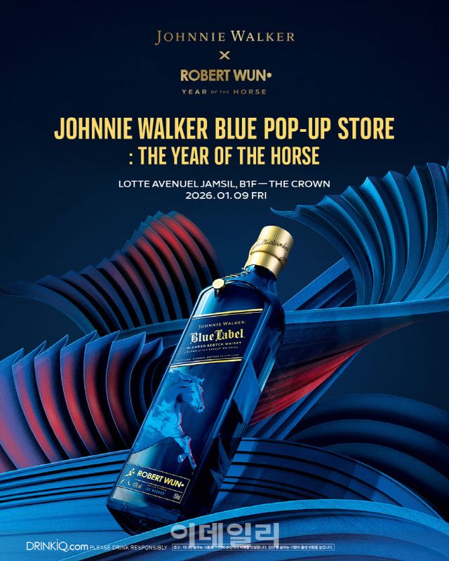 조니워커 블루 말띠 에디션은 매년 선보이는 연간 한정판 시리즈로, 2026년 에디션은 런던 기반 패션 디자이너 로버트 운과의 협업으로 완성됐다. 역동적인 말의 이미지를 보틀 디자인에 담아 조니워커의 브랜드 철학인 ‘킵 워킹(Keep Walking)’을 시각적으로 표현했다.