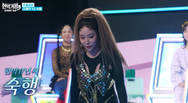6일 방송된 MBN ‘현역가왕3’ 방송에는 여자 트롯 가수들이 1대1로 노래 대결을 펼치는 모습이 그려졌고 숙행은 후반부에 강혜연과의 대결에서 모습을 드러냈다.