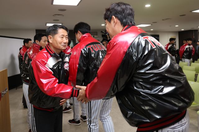 김인석 대표이사는 "새롭게 다가오는 이번 시즌은 2025년 챔피언으로서의 책임감을 가지고 지금부터 철저한 준비와 함께 초심으로 돌아가 다시 한번 최고의 결과를 만들자. 2026시즌에도 LG 트윈스의 새로운 역사를 함께 써 내려가길 기대한다"라고 밝혔다. 이어 "당장의 시즌 준비도 중요하겠지만, 3~4년 뒤의 미래를 생각하는 중장기적 플랜을 가지고 지속적인 강팀으로서의 모습과 함께 명문 구단으로 발돋움할 수 있는 세밀한 준비와 훈련을 부탁한다"고 당부했다.
