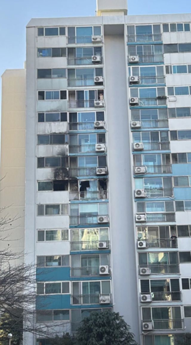 발화 세대 위층은 직접적인 화염 피해는 크지 않아 보였지만, 외벽 곳곳에 남은 검댕이 당시 긴박했던 상황을 짐작하게 한다.
