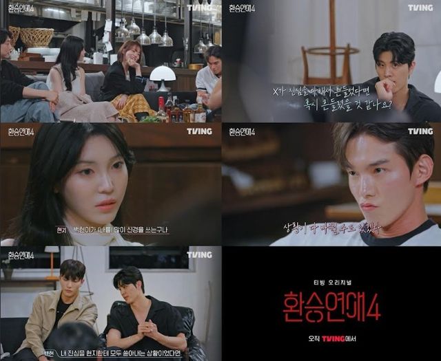 오늘(7일) 공개될 티빙 오리지널 <환승연애4> 19화에서는 입주자들이 모두 한 자리에 모인 자리에서 ‘진실의 밤’을 통해 관계의 윤곽을 보다 선명하게 그려나간다. X와 NEW 사이에서 갈등하던 이들 역시 자신의 마음을 한층 더 깊게 마주하면서 관계 구도에도 변화의 조짐이 피어난다고 해 기대감을 높인다.