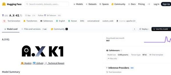 SK텔레콤 정예팀은 매개변수 519B(5190억개) 규모의 초거대 인공지능(AI) 모델 'A.X K1(에이닷엑스 케이원)'의 기술 보고서를 오픈소스 플랫폼 허깅페이스에 공개했다고 7일 밝혔다.