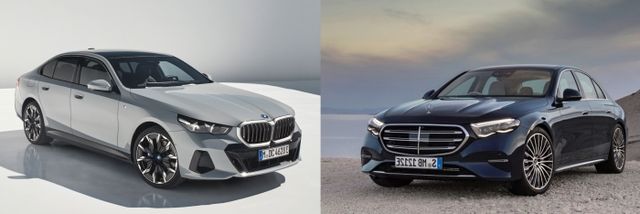 BMW 5시리즈(왼쪽)와 벤츠 E클래스. 사진=BMW코리아, 메르세데스-벤츠코리아 제공