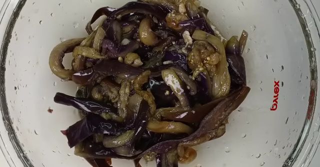 먼저 가지를 깨끗이 씻어 물기를 닦은 뒤 가늘게 채 썬다. 너무 두껍게 썰면 이후 과정에서 속까지 열이 고르게 전달되지 않는다. 채 썬 가지를 전자레인지용 용기에 담고, 위에 비닐이나 랩을 씌운다. 이때 완전히 밀봉하지 말고 한쪽을 살짝 열어 김이 빠질 공간을 남겨둔다. 전자레인지에 넣고 몇 분간 돌리면 가지의 숨이 죽으며 수분이 빠져나오기 시작한다. 완전히 익히는 단계가 아니라, 조직을 안정시키는 과정이라고 생각하면 된다.