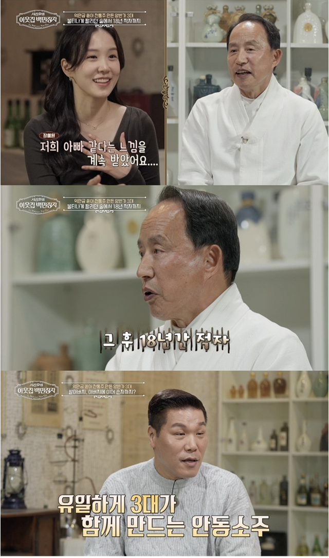 군인 출신이라는 이력이 공개되자 장예원은 “저희 아빠 같다는 느낌을 계속 받았다. 저도 군인 딸이다”라며 반가움을 전한다. 이후 서울에서 직장 생활을 하던 3대 박춘우도 아버지의 제안을 받고 합류하면서 ‘3대가 함께 만드는 안동소주’가 완성됐다.