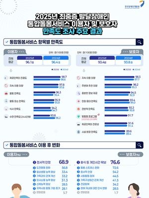 보건복지부가 2025년 최중증 발달장애인 통합돌봄서비스 만족도 조사 결과를 발표하고 2026년도 예산 지원 확대 계획을 밝혔다.