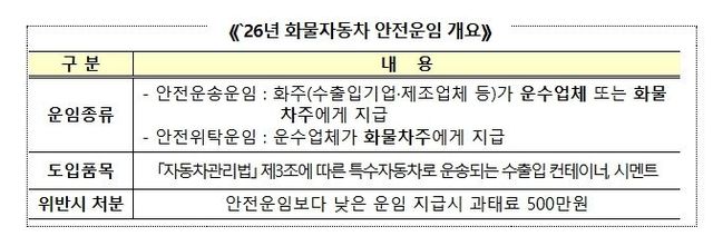 이번 의결을 통해 고시될 ‘26년 적용 안전운임의 주요 내용은 다음과 같다.