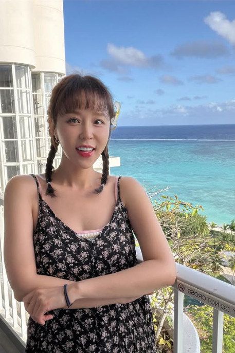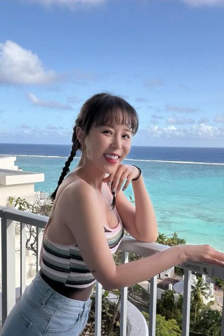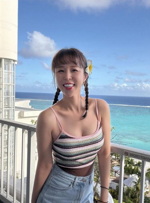 공개된 사진에는 사이판에 위치한 한 호텔 방 발코니에서 포즈를 취하고 있는 신지의 모습이 담겨있다.