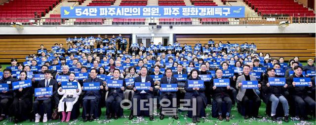 경기 파주시는 지난 7일 파주시민회관 대공연장에서 김경일 시장을 비롯해 주요 내빈과 평화경제특구 유치 시민추진단, 시민 등 200여명이 참석해 ‘평화경제특구 비전 선포식’을 개최했다고 8일 밝혔다.