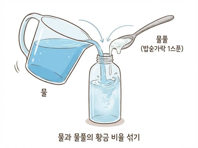 문구점에서 쉽게 구할 수 있는 물풀을 한 스푼만 활용하면 늘어난 니트의 탄탄함을 어느 정도 되돌릴 수 있다. 방법은 간단하다. 분무기에 200ml 정도 미지근한 물을 한 컵 정도 붓고, 여기에 물풀을 밥숟가락 하나 분량으로 넣어 잘 섞는다.