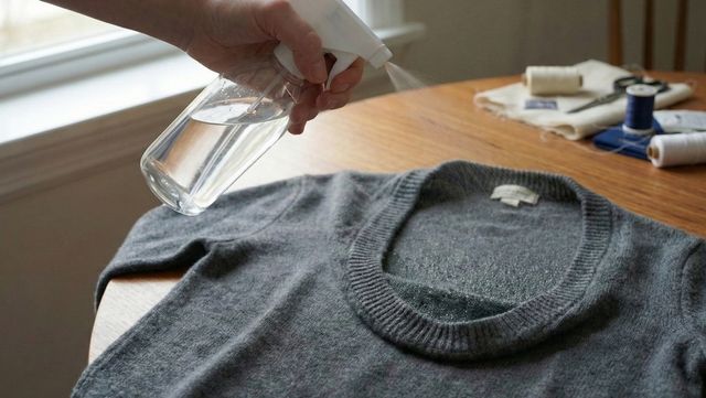 그다음 깨끗한 수건이나 키친타월 위에 니트의 늘어난 부분을 펼쳐놓는다. 물풀을 섞은 물은 훼손된 부위에 골고루 분사한다. 이후 스팀다리미의 '스팀'만 옷에 충분히 쏘아준다. 포인트는 스팀다리미를 옷에 직접 대지 않고 일정 거리를 둔 채 '스팀 열기'만 가하는 것이다. 옷에 다리미가 직접 닿으면 풀이 눌어붙을 수 있어 주의해야 한다. 이 과정을 통해 스팀의 열이 늘어난 조직을 조여주고, 물풀이 그 상태를 고정해 주면서 늘어났던 부분이 다시 쫀쫀하게 돌아온다.