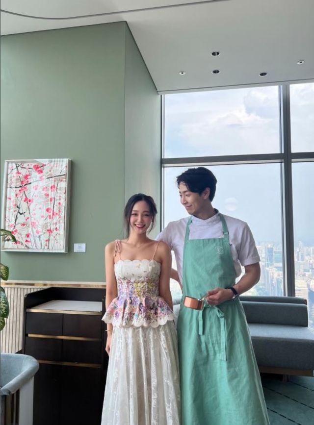 공개된 사진에는 이주영과 손종원 셰프가 나란히 서서 찍은 투샷이 담겼다. 화려한 자수가 돋보이는 드레스를 입은 이주영 옆에서 손종원 셰프는 그녀를 바라보며 환하게 미소 짓고 있다. 사진 속 두 사람의 다정한 분위기가 눈길을 끌었다.