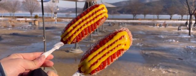 양평 두물머리 연핫도그. / 유튜브 '로로밍'