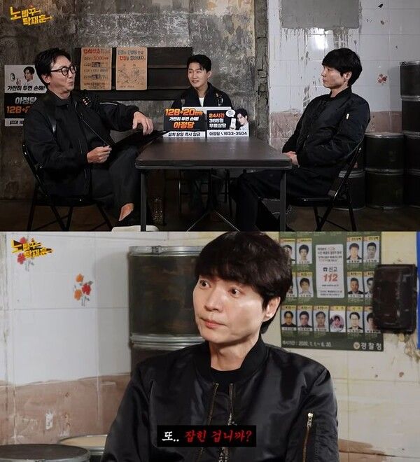 신정환은 자리에 앉아 탁재훈에게 "또 잡힌 겁니까?"라고 물으며 너스레를 떨었다.