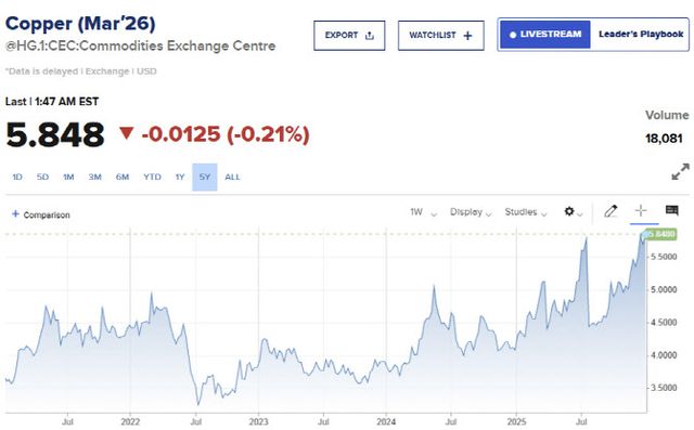 한편 구리 국제 가격은 최근 최고치 수준을 기록하고 있다. 재생에너지 인프라와 AI 데이터센터 건설로 대량의 구리가 필요하다는 전망이 수급 경색 우려로 이어지고 있다.