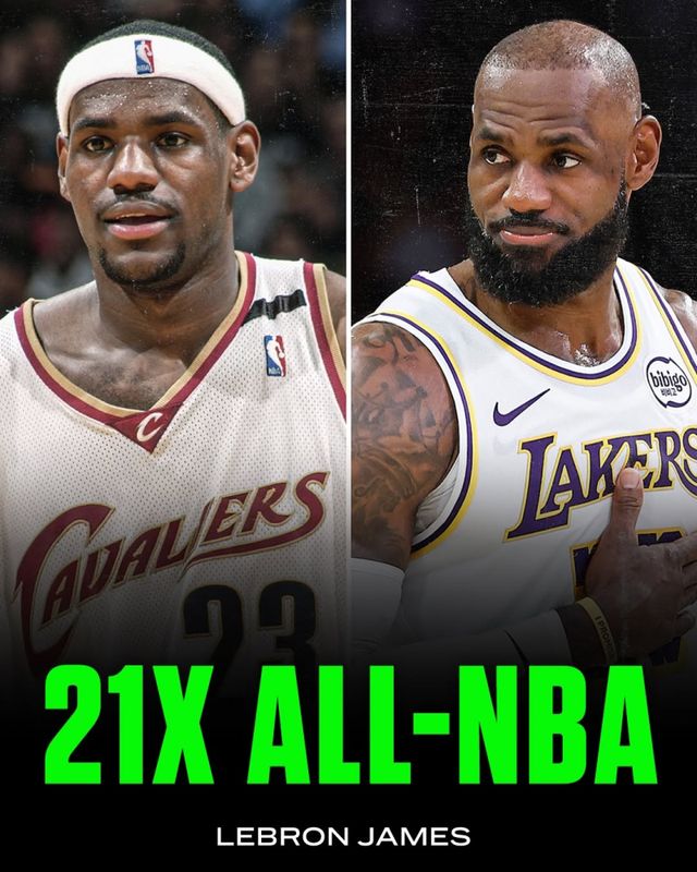 제임스는 데뷔 시즌인 2003~04시즌 신인왕, 이후 2004~05시즌부터 지난 시즌까지 21시즌 연속 올-NBA 팀에 이름을 올린 바 있다.