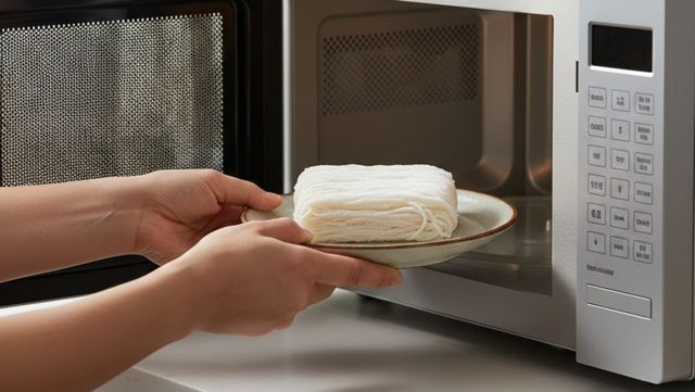 냉동 소면을 전자레인지에 넣는 모습. AI가 생성한 자료사진.
