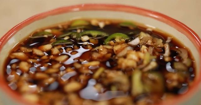 임 셰프는 육장을 식탁에 내는 방법도 별도로 알려줬다. 종지에 육장 원액을 담고, 청양고추를 조금 넣어준다. 여기에 파와 다진 마늘을 추가로 넣어 세팅한다.