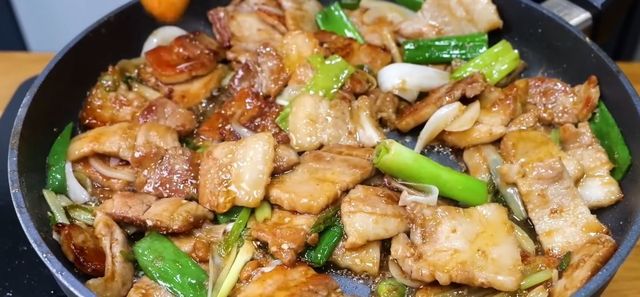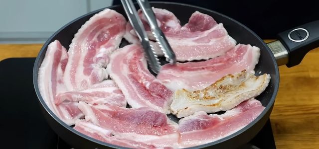 만드는 방법은 생각보다 간단하다. 먼저 삼겹살은 너무 얇지 않은 두께로 준비한다. 구이용보다 살짝 두꺼운 정도가 조림에 적합하다. 팬에 삼겹살을 올리고 기름을 두르지 않은 상태에서 중불로 굽는다. 완전히 익히는 것이 목적이 아니라, 겉면만 노릇하게 구워 기름을 일부 빼주는 과정이다. 이때 나온 기름은 키친타월로 한 번 닦아내면 조림이 훨씬 담백해진다.