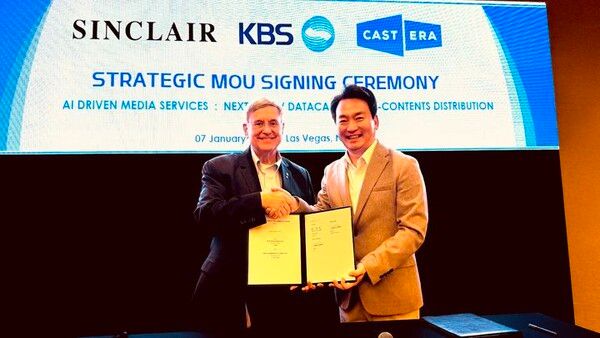 뉴시스 보도에 따르면, 박장범 KBS 사장은 7일(현지시간) 미국 라스베이거스에서 열린 'CES 2026'에서 싱클레어 방송그룹 델 팍스 기술총괄 사장과 인공지능(AI) 기반 데이터 캐스팅 서비스 협력에 관한 전략적 양해각서(MOU)를 맺었다. 싱클레어는 미국 내 방송국 198개를 보유하고 있다.