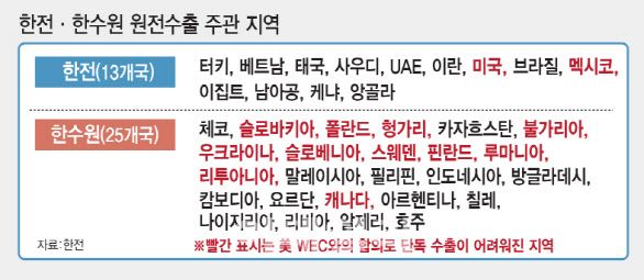 그러나 이들이 지난해 미국 웨스팅하우스와의 지식재산권 분쟁을 종식하기 위해 맺은 협약에서 K-원전 수출지역이 제약된 현 체제의 개편이 불가피한 상황이다. 또 이참에 원전 수출체계를 일원화해야 한다는 쪽으로 방향성이 잡힌 상황이다.