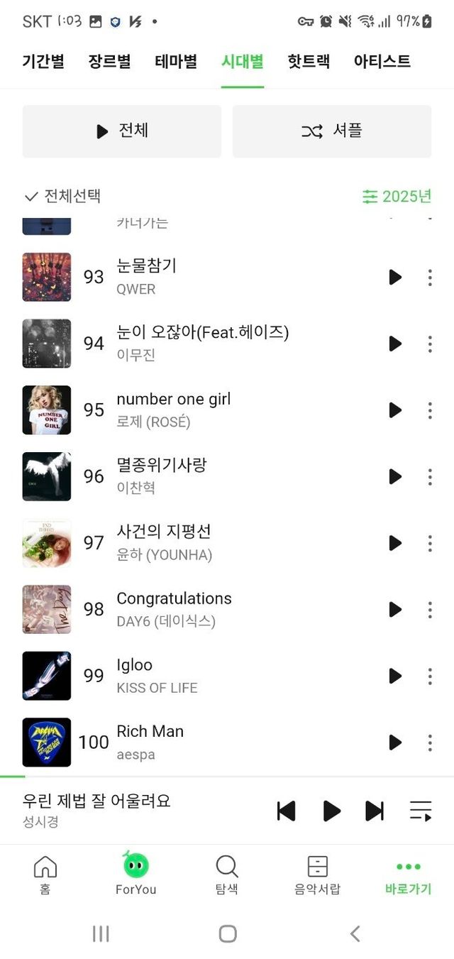 딱 100위는 에스파 rich man