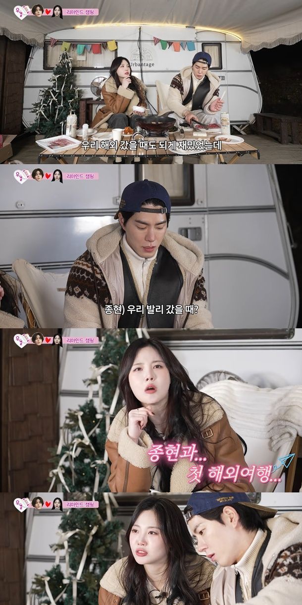 이후 두 사람은 야외 캠핑을 함께 즐기며 '우리 결혼했어요' 촬영 비하인드를 이어갔다. 유라는 "우리 해외 갔을 때도 정말 재밌었다"고 떠올렸고, 홍종현이 "발리 갔을 때?"라고 묻자 "맞다. '우결'을 통해 해외 예능을 처음 가봤다. 짚라인도 타고, 예쁜 옷 입고 파티도 참여했다"고 당시를 회상했다.