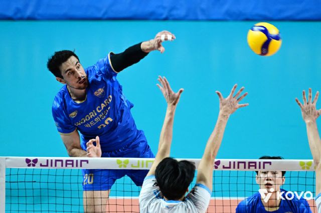 우리카드의 쌍포가 불을 뿜었다. 207cm 장신 왼손 공격수 하파에우 아라우주(등록명 아라우조)가 고공강터룰 내리 꽂았다. 20득점을 책임지면서 공격성공률이 무려 60%를 넘어섰다. 아시아쿼터 알리 파즐리(등록명 알리)도 17득점으로 제 몫을 했다.