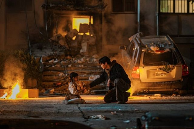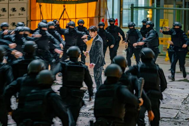 클라이맥스는 공간부터 ‘생활 밀착형’이다. 극 말미 아파트 단지에서 펼쳐지는 상웅과 조나단의 대결 장면은, 스케일보다 체감 긴장감에 초점을 맞춘다. 하늘에서 지폐 다발이 흩날리는 가운데 어린아이를 구해낸 상웅의 모습은 ‘시민을 지키는 히어로’라는 메시지를 직관적으로 찍는다. 반대로 조나단은 수단과 방법을 가리지 않고 초인적인 힘을 얻은 집념으로 맞선다. ‘돈이 힘’이라는 세계에서, 힘을 얻는 방식이 인물의 윤리를 가른다. 그 대비가 대결을 더 날카롭게 만든다.