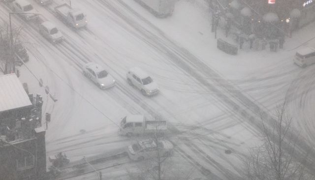 도로에 눈에 쌓여 일대를 지나는 차량이 거북이 운행을 하고 있다. / 뉴스1