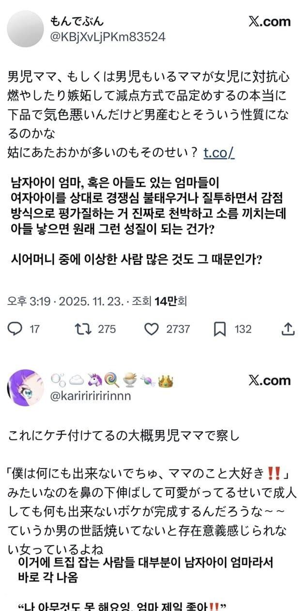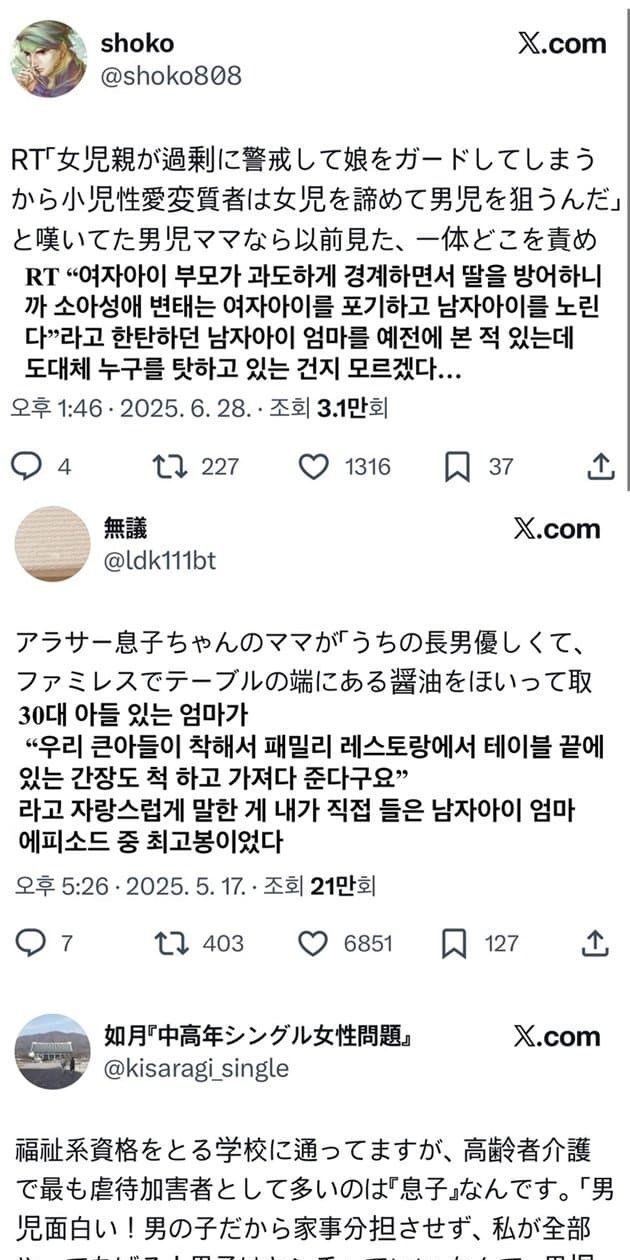 일본 여성들이 아들 엄마는 "男児ママ"