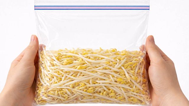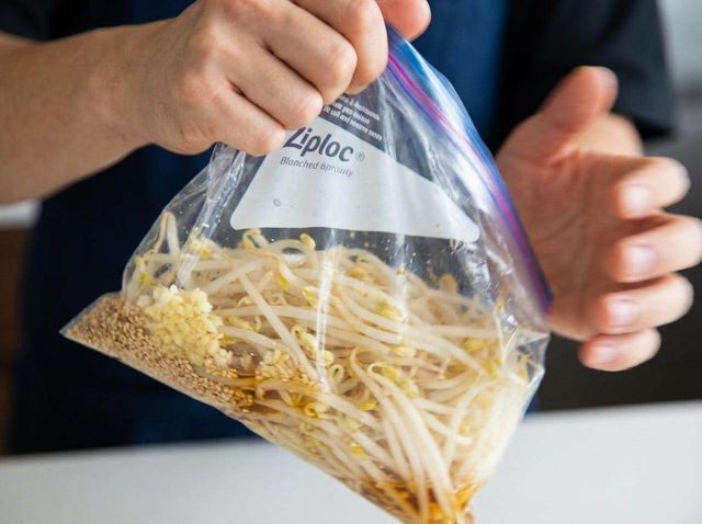 지퍼백에 콩나물 넣고 30초 흔들어 주기. 기사 내용 토대로 AI툴 활용해 제작한 자료사진.