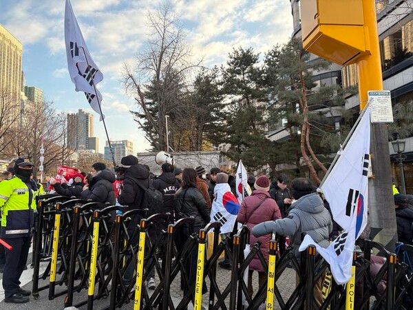 오전 8시40분께 법무부 교정본부의 차량이 모습을 드러내자 지지자들은 "윤석열 대통령"을 연호하며 일부는 중앙지법 서문으로 뛰어서 올라가는 모습을 보이기도 했다.