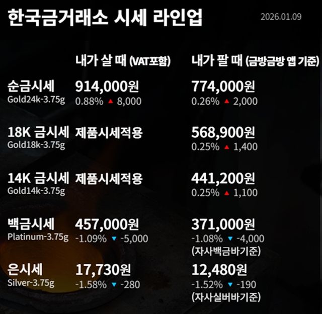 순금 : 매입가 91만 4000원 / 매도가 77만 4000원