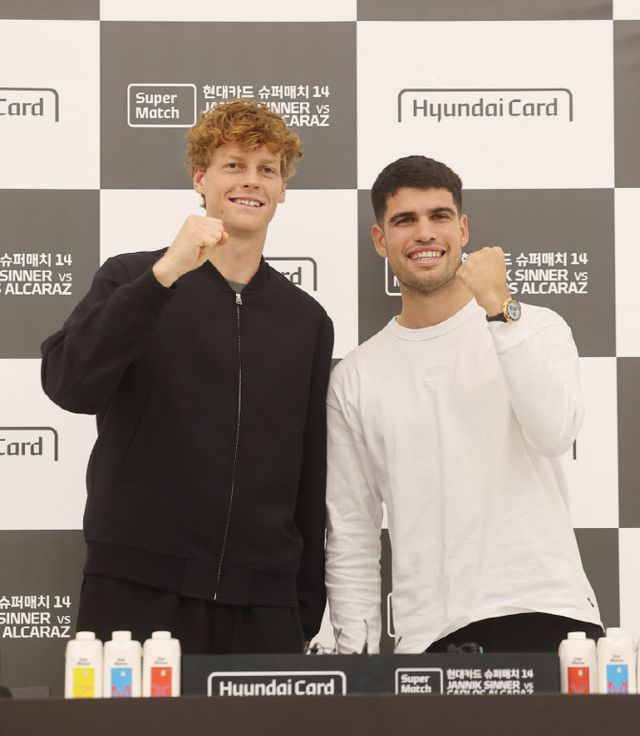 알카라스와 신네르는 9일 서울 영등포구 현대카드 본사에서 열린 현대카드 슈퍼매치 14 공식 기자회견에 참석했다. 알카라스는 “올해 첫 경기를 신네르와 함께 한국에서 하게 돼 좋은 기회가 될 것”이라며 “호주오픈 개막을 앞두고 경기 감각을 찾는 데도 도움이 될 것”이라고 말했다.