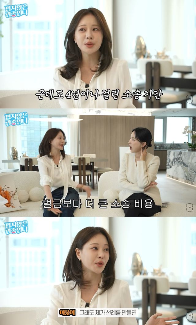 이지혜가 “그럼 결국 몸도 고생하고 손해 아니냐”고 묻자, 아옳이는 “맞다. 힘없는 사람이면 당할 수밖에 없는 구조다. 그래도 제가 선례를 만들면 비슷한 피해를 겪은 사람들이 승소하기 쉬워진다고 해서 끝까지 대응했다”고 덧붙였다.