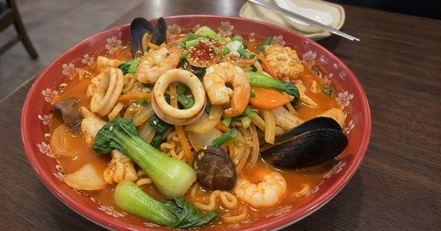 재료는 새우, 돼지고기, 애호박, 배추, 오징어(낙지), 바지락, 중화면, 청양고추, 죽순, 양송이, 목이버섯, 파, 마늘, 양파, 청경채, 고춧가루, 굴 소스, 치킨스톡, 진간장이다.