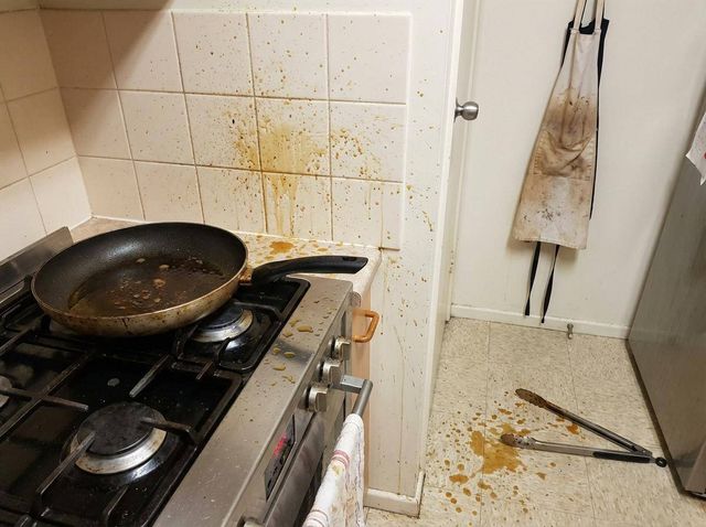 집에서 고기를 구워 먹을 때 사방으로 튀는 기름. 기사 내용 토대로 AI툴 활용해 제작한 자료사진.