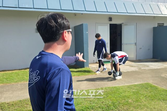 두 선수의 훈련을 지켜보던 류지현 한국대표팀 감독이 환한 미소를 지었다. 감독의 시야에 있던 선수는 고우석(디트로이트 타이거스)과 박영현(KT 위즈). 한국의 신구 마무리 투수가 함께 땀을 흘리는 모습에 류 감독이 흐뭇한 미소를 지었다. 류지현 감독은 "첫날인데 선수들이 알아서 짝을 지어 잘 훈련하고 있다. 분위기도 너무 좋다"라며 웃었다.