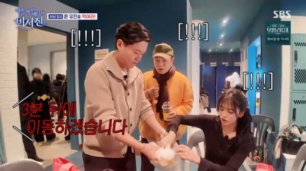 사건은 대기실에서 터졌다. 김광규가 아이브의 리더를 장원영으로 착각하는 실수를 저지르자 안유진은 단호하게 아이브 대기실 출입 금지령을 내렸다. 반면 이서진은 장원영을 왜 찾아보냐며 본인은 담당 연예인인 안유진만 알면 된다고 외치며 남다른 충성심을 보여주어 웃음을 유발했다.