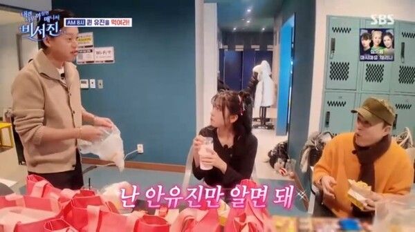 이날 방송에서 두 매니저는 안유진의 인천 공연 일정에 동행했다. 김광규는 아침 식사 주문 과정에서 초코라테와 아이스티 메뉴를 혼동하며 허당 매력을 발산했다. 이를 지켜본 안유진은 다음 단계인 밥 메뉴 선정까지 갈 수 있을지 걱정이라며 난항을 토로해 폭소를 자아냈다.