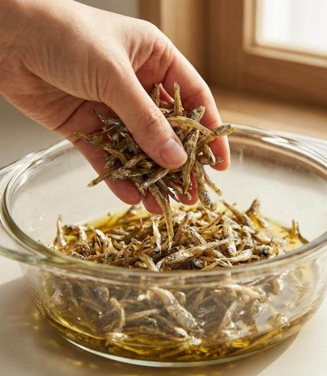 이 방법의 출발점은 수분 제거다. 잔멸치는 그대로 가열하면 눅눅해지기 쉽다. 먼저 기름을 고르게 묻혀 전자레인지로 가열하면 멸치 표면의 잔수분이 빠르게 증발한다. 이 과정에서 멸치 특유의 비린 향도 함께 줄어든다. 팬에서 볶을 때와 달리 뒤집을 필요가 없어 조리 시간이 일정하게 유지된다.