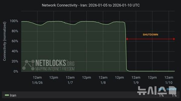 뉴시스 보도에 따르면, 글로벌 온라인 감시단체 넷블록스는 10일(현지시간) 소셜네트워크서비스(SNS)를 통해 "이란에서 전국적인 인터넷 차단이 36시간째 지속되고 있다. 이로 인해 이란 국민들은 가족, 친구의 안부를 확인하는데 심각한 어려움을 겪고 있다"고 전했다.