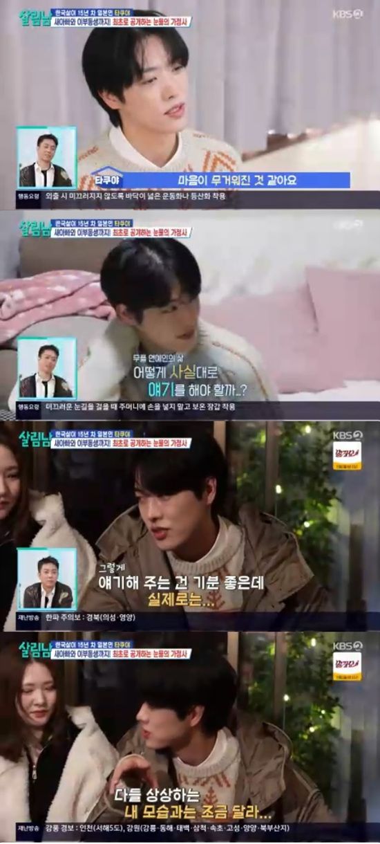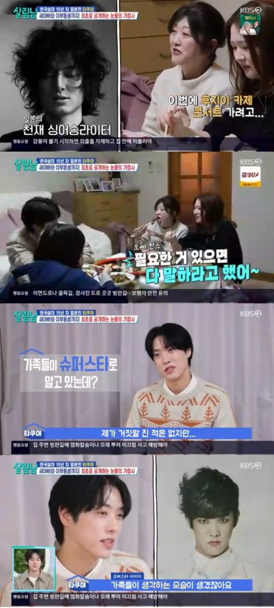 10일 방송된 KBS 2TV '살림하는 남자들 시즌2'에서는 타쿠야가 일본 본가를 방문하는 모습이 전파를 탔다.