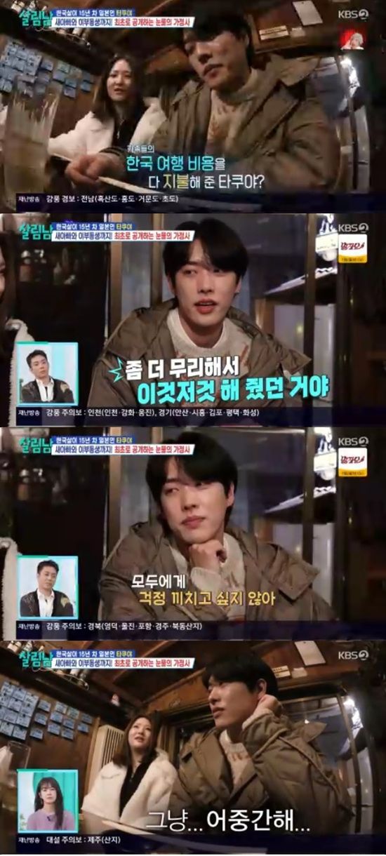 10일 방송된 KBS 2TV '살림하는 남자들 시즌2'에서는 타쿠야가 가정사를 최초 공개해 눈길을 끌었다.