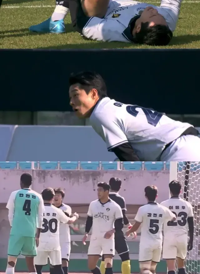 드라마 ‘서울 자가에 대기업 다니는 김 부장 이야기’에서 ‘도부장’으로 사랑받은 대세 배우 이신기 역시 거친 승부의 희생양이 된다. ‘라이온하츠FC’의 핵심 에이스인 이신기는 상대의 집중 견제 속에 다리를 잡고 쓰러지며 ‘부상 위험’까지 거론된다. 평소 동료들을 다독이던 그마저 감정을 숨기지 못할 만큼, 이날 경기는 살벌한 분위기 속에서 치러진다.