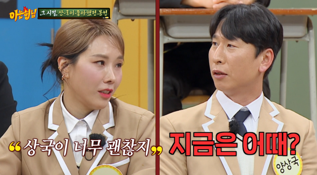 이날 서장훈은 “신봉선은 볼때마다 예뻐진다”고 칭찬했고, 강호동도 “KBS 활동할 때도 유독 인기가 많았다는 이야기가 있다”며 과거 양상국이 신봉선을 짝사랑했다고 폭로했다.
